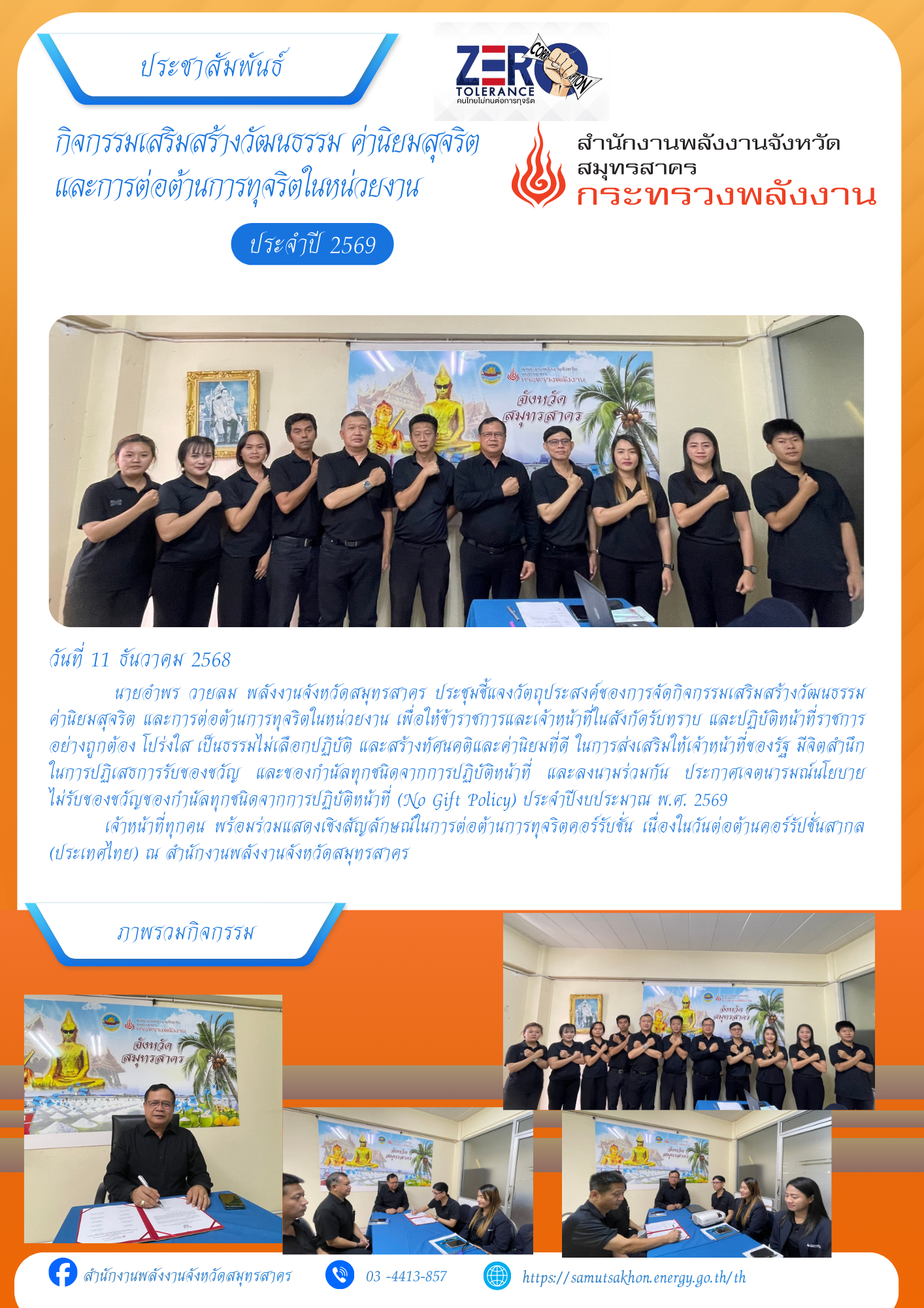 กิจกรรมเสริมสร้างวัฒนธรรม ค่านิยมสุจริต และการต่อต้านการทุจริตในหน่วยงาน
